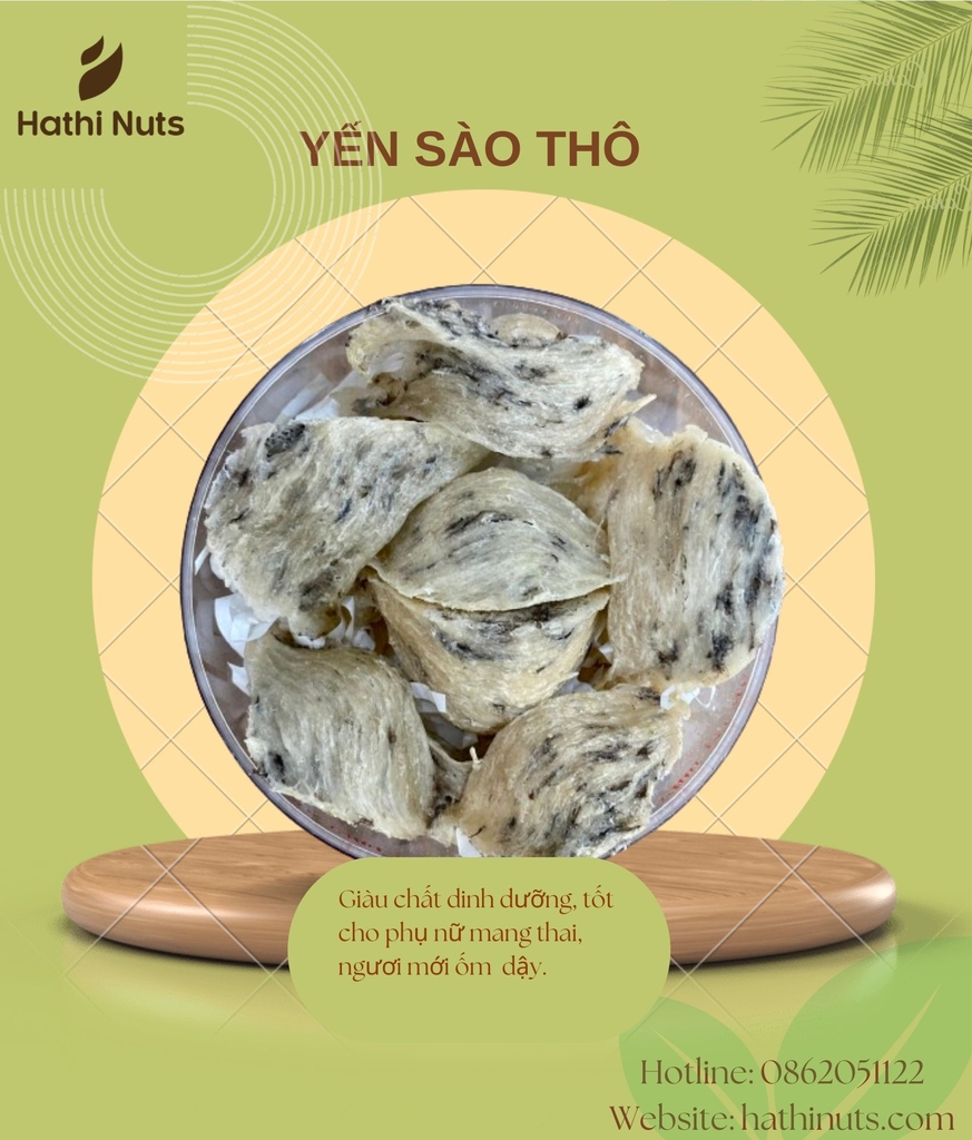 Tổ yến thô là yến sào nguyên thủy và có giá trị dinh dưỡng cao nhất trong các loại yến vì chưa qua bất kỳ công đoạn sơ chế nào. Trên thị trường, yến thô có giá thành thấp hơn so với các loại yến khác. Tuy nhiên, trước khi sử dụng bạn cần phải sơ chế để loại bỏ lông, tạp chất, bụi bẩn. Mặc dù mất nhiều thời gian nhưng loại yến này vẫn được nhiều người lựa chọn.